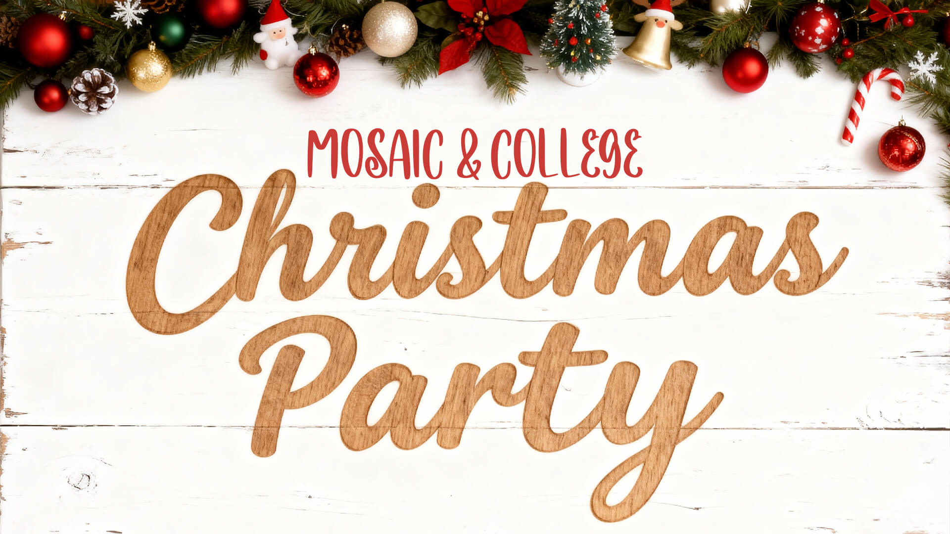 Our Mosaic and College ministries are coming together for a special Christmas Party on Saturday, December 13, from 11:00 a.m.–1:00 p.m. in Room 215. Bring a side dish to share and join us for festive fun, food, and a friendly game of Christmas trivia. It’s a great chance to connect, laugh, and celebrate the season together!